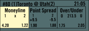 Angka plus (+) menunjukkan bahwa tim atau pemain tersebut dianggap sebagai underdog (tidak diunggulkan) dan membayar lebih banyak jika menang. Angka minus (-) menunjukkan bahwa tim atau pemain tersebut dianggap sebagai favorit (diunggulkan) dan Anda harus membayar lebih untuk memenangkan jumlah yang sama.